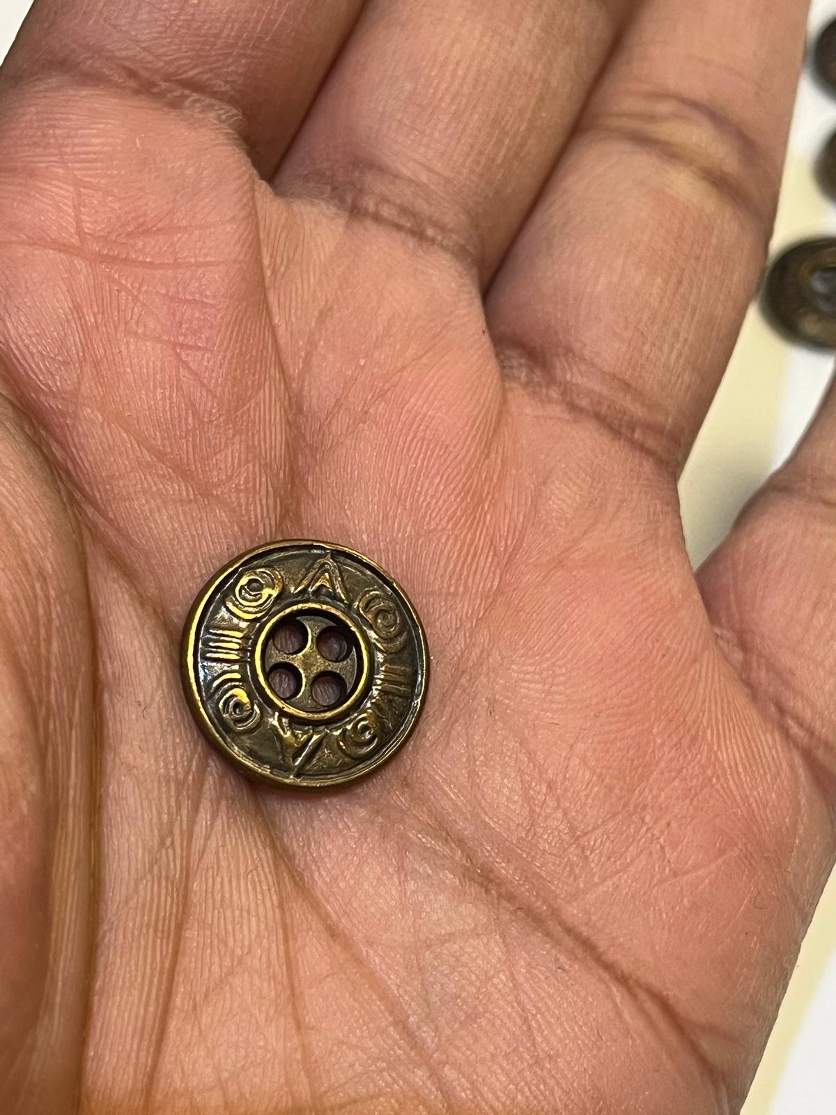 Vintage Native Symbol Metal Buttons- four holed in antique brass color.